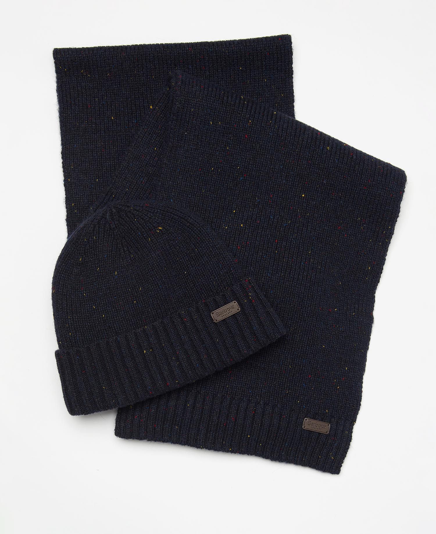 Le bonnet présente un design côtelé tricoté avec un ourlet retourné pour un style intemporel tandis que l'écharpe comporte un fil mélangé de laine moucheté pour un ensemble assorti sans effort et est présenté dans une boîte cadeau de marque Barbour.