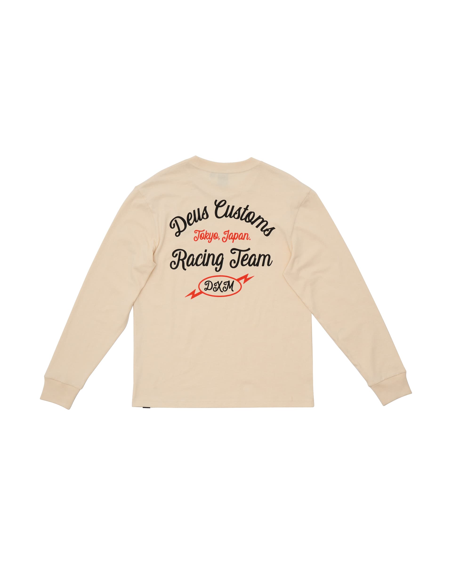 T-shirt à manches longues coupe ajustée avec imprimé artistique sur la poitrine et le dos, fabrication en jersey de coton recyclé avec un lavage intensif des vêtements