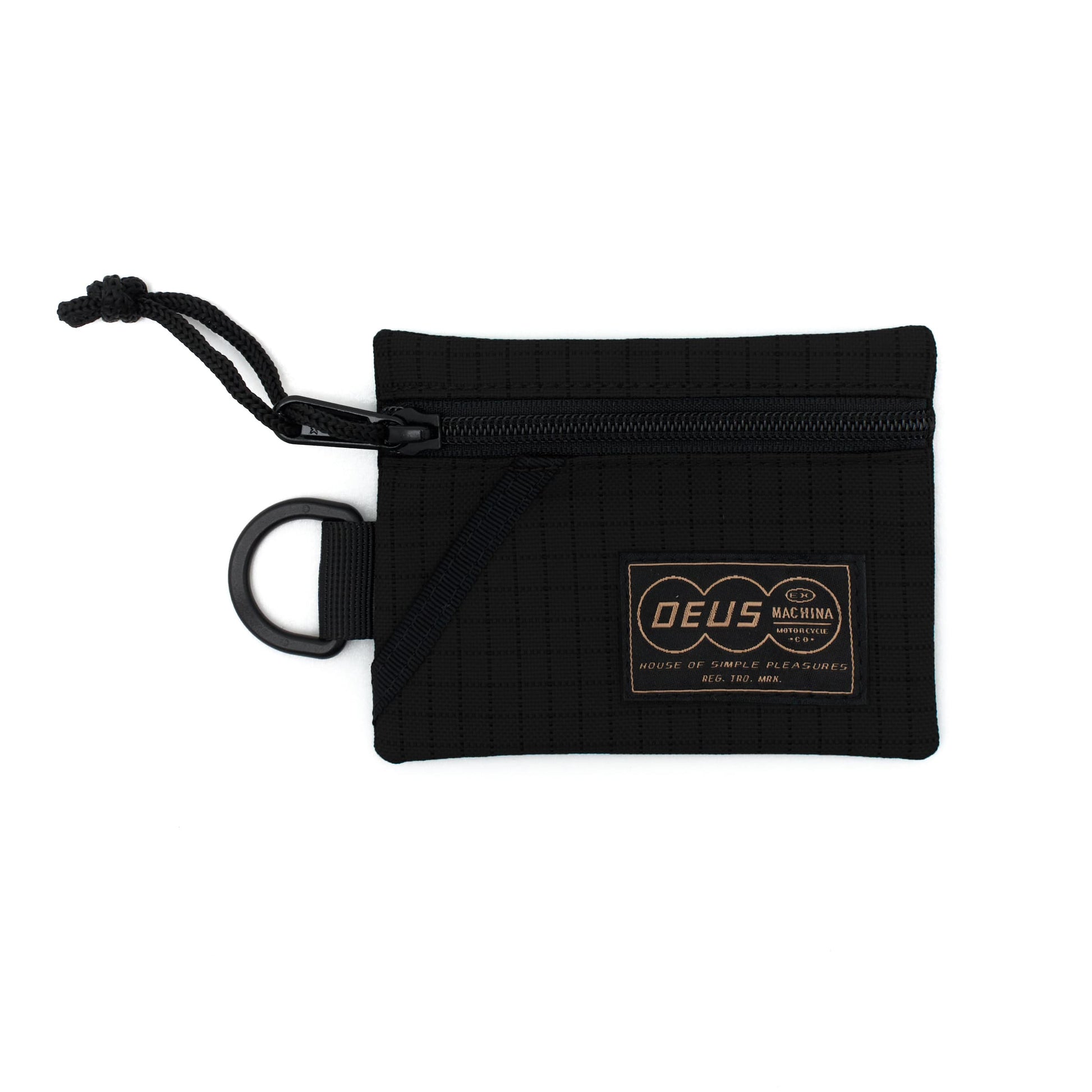 Pochette à monnaie avec poche zippée, anneau en D et étiquette tissée sur le devant en nylon ripstop