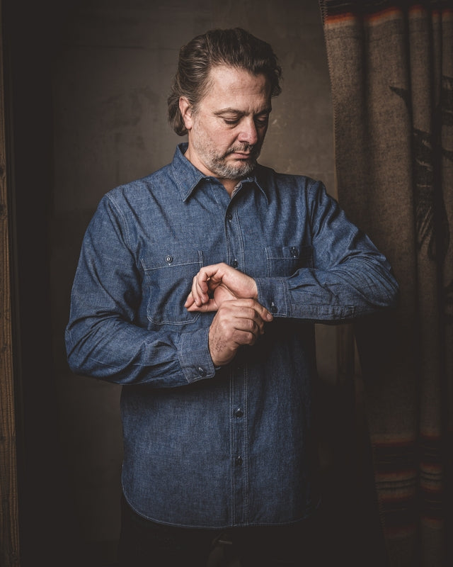 - 100% coton, tissu 5oz Selvage Chambray tissé au Japon.