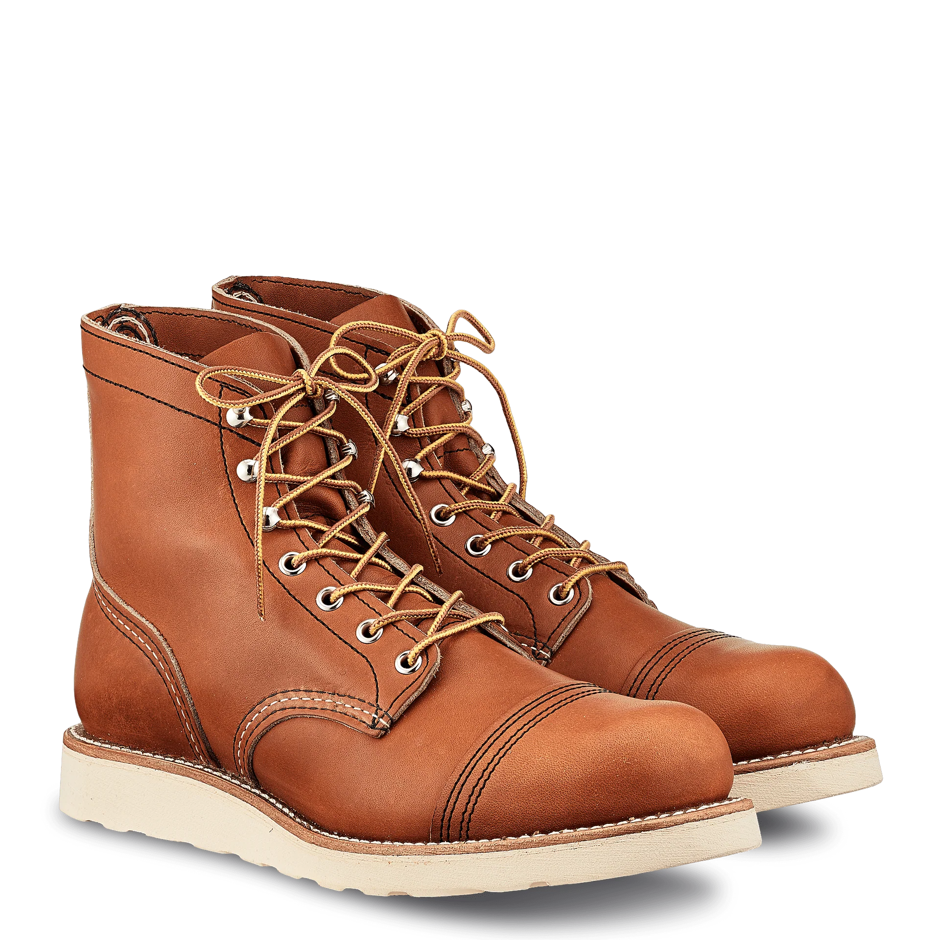La Red Wing Shoes Iron Ranger 8089 Oro-legacy est une chaussure de travail ronde classique Red Wing Shoes et est fabriquée à Red Wing, Minnesota. Le style Red Wing Shoes Iron Ranger s'inspire de la Mesabi Iron Range dans le nord du Minnesota, une région accidentée connue pour ses mines de fer. Les hommes travaillant dans ces lignes étaient appelés « Iron Rangers », soulignant leur mentalité aventureuse. Le Red Wing Iron Ranger est facilement reconnaissable à son double embout en cuir pour offrir une mesure de sécurité supplémentaire. En plus de cela, le Red Wing Iron Ranger dispose d'une protection supplémentaire du talon pour un meilleur soutien. Le Red Wing Oro-legacy vieillit magnifiquement et toutes les marques naturelles restent visibles. La Red Wing 8080 Iron Ranger est dotée d'une semelle extérieure White Traction Tred. Le 8089 Iron Ranger est livré avec des lacets taslan jaune/beige.